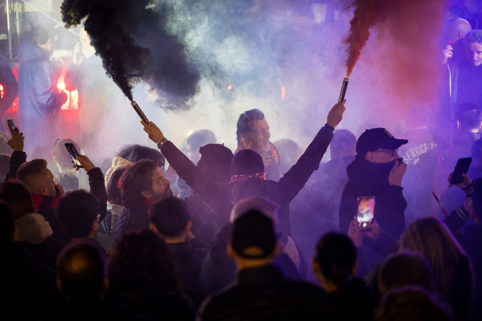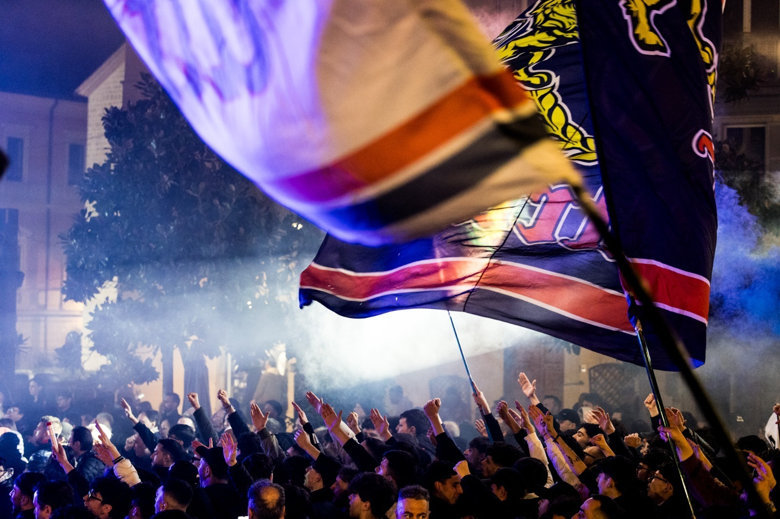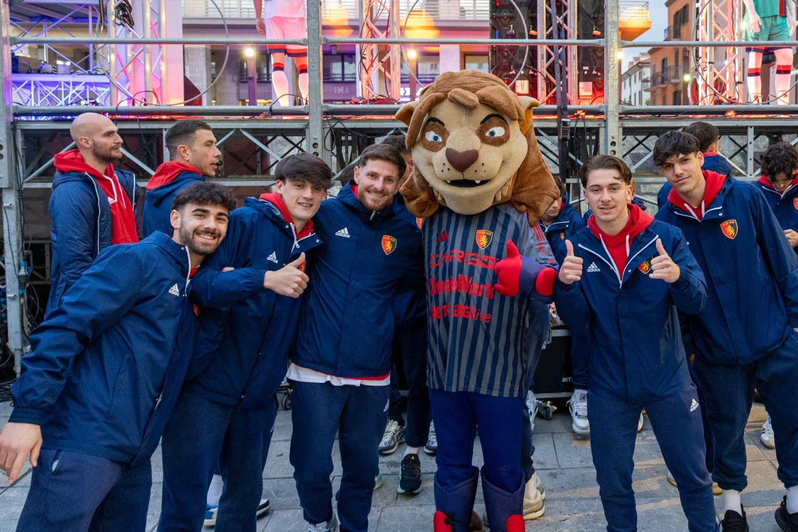Bagno di folla in piazza Mario Pagano per la festa rossoblù
